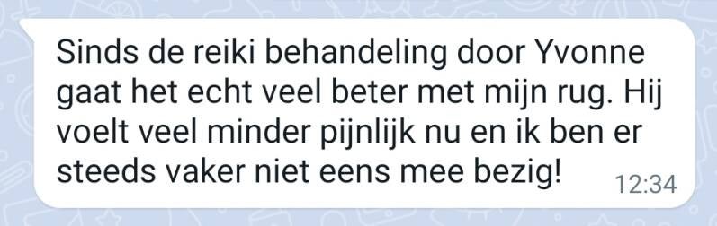 Bij Reiki is het niet nodig om iemand aan te raken. Reiki kan je ook op afstand geven. Dus mocht je het prettiger vinden om niet aangeraakt te worden of om thuis te blijven, dan kan ik je nog steeds Reiki geven. Mocht je dit willen, geef dit dan zeker aan.